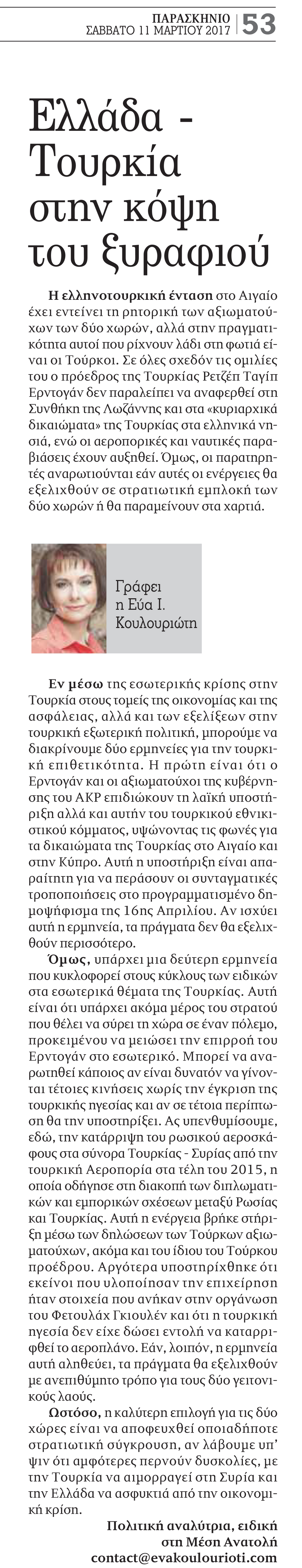 Ελλάδα – Τουρκία στην κόψη του ξυραφιού11 Μαρτίου, 2017 στο Αρθρογραφία / Παρασκήνιο επισημασμένο με ετικέτα ΡΩΣΙΑ / ΣΥΝΘΗΚΗ ΛΩΖΑΝΝΗΣ / ΣΥΡΙΑ / ΤΟΥΡΚΙΑ / ΤΡΑΜΠ