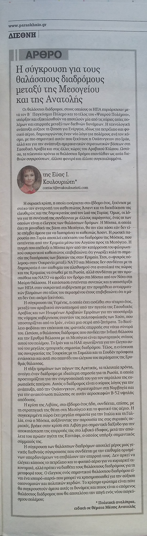Η σύγκρουση για τους θαλάσσιους διαδρόμους μεταξύ της Μεσογείου και της Ανατολής20 Ιανουαρίου, 2018 στο Αρθρογραφία / Παρασκήνιο