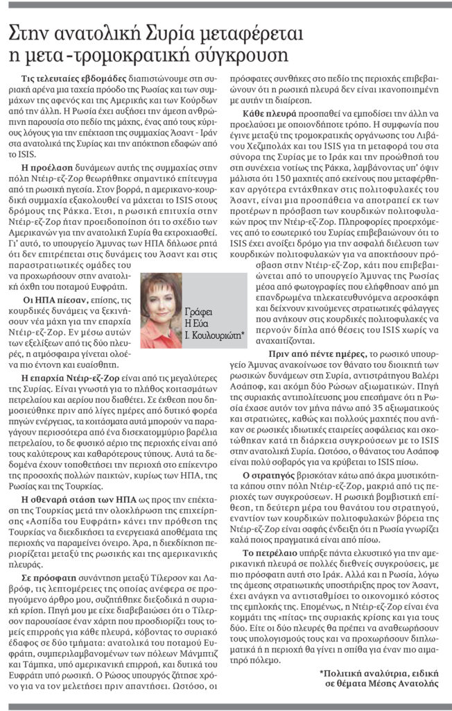 untitledδημοσιευμένο 6 Οκτωβρίου, 2017 στις διαστάσεις 1200 × 1885 στο Στην ανατολική Συρία μεταφέρεται η μετα-τρομοκρατική σύγκρουση. https://evakoulourioti.com/wp-content/uploads/2017/10/Τ-598_ΕΝΙΑΙΟ-45b-652x1024.jpg