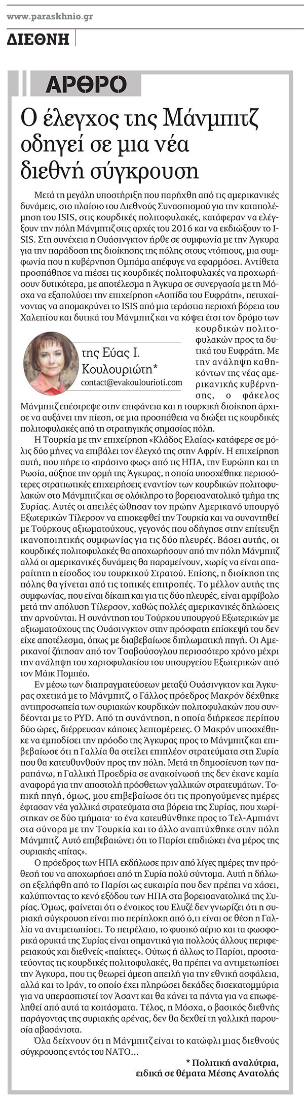 Ο έλεγχος του Μάνμπιτζ οδηγεί σε μια νέα διεθνή σύγκρουση6 Απριλίου, 2018 στο Αρθρογραφία / Παρασκήνιο